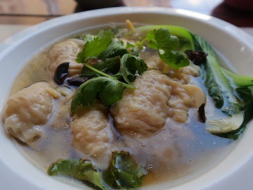 Raviolis aux crevettes, légumes de saison